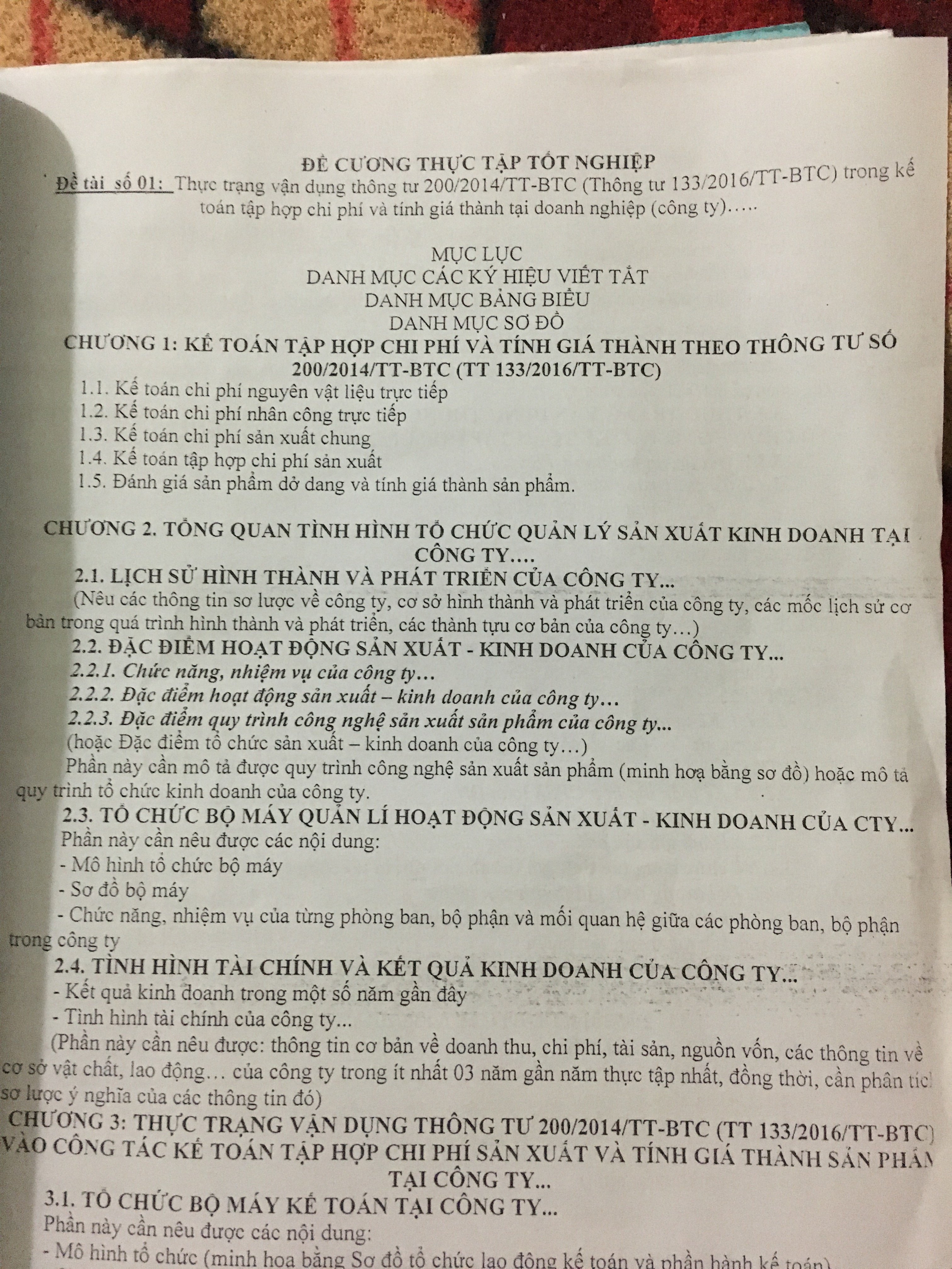Các anh chị ơi giúp em với ạ. Em đang làm báo cáo thực tập tốt nghiệp về đề tài tập hợp CP tính giá thành ạ. Mà công ty em thực tập lại áp dụng thông tư 133. Đề cương thực tập chương 1 như thế này em k biết phải làm như thế nào ạ. Anh chị giúp em với ạ. Em cảm ơn ạ !