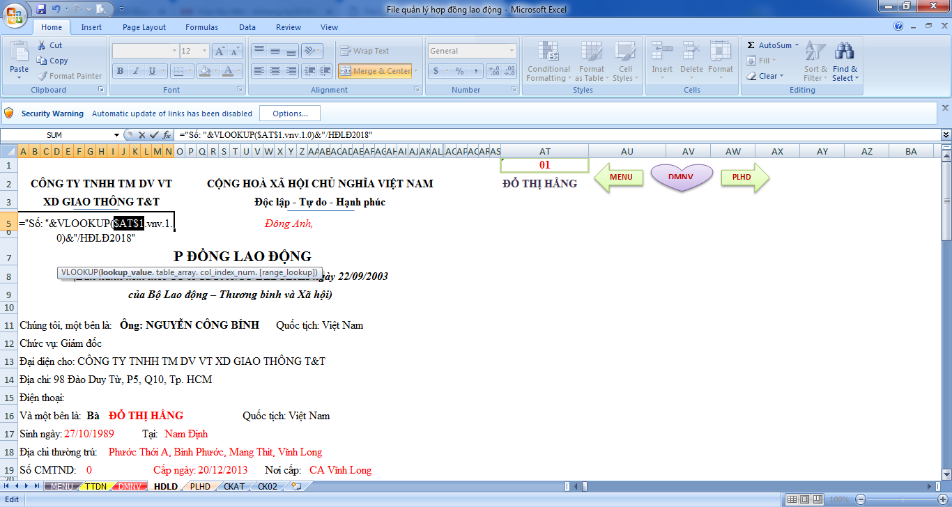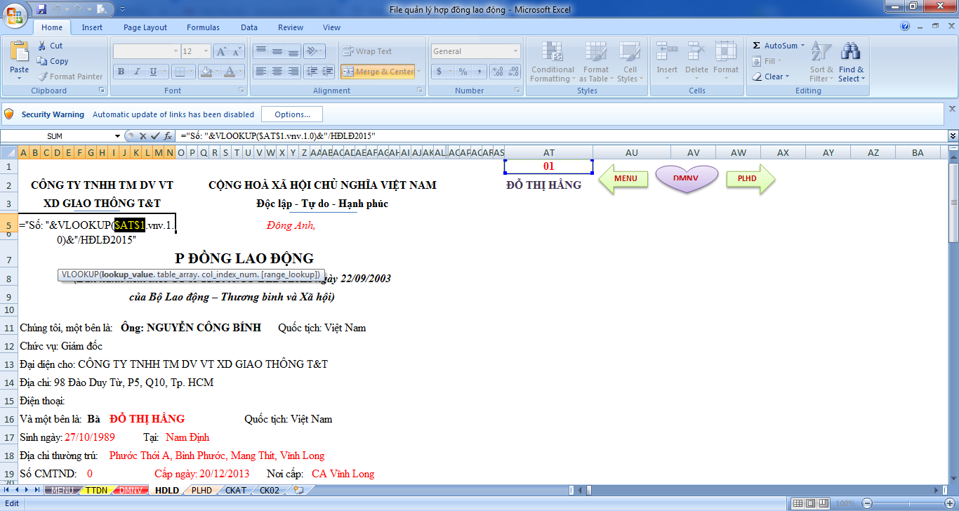 File Excel quản lý và in hợp đồng lao động rất hay