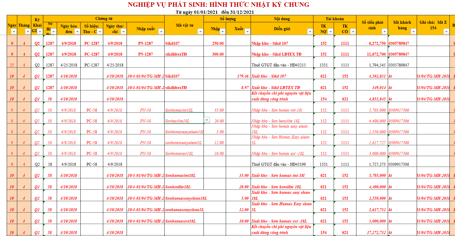 Nhập dữ liệu vào phần nhật ký chung