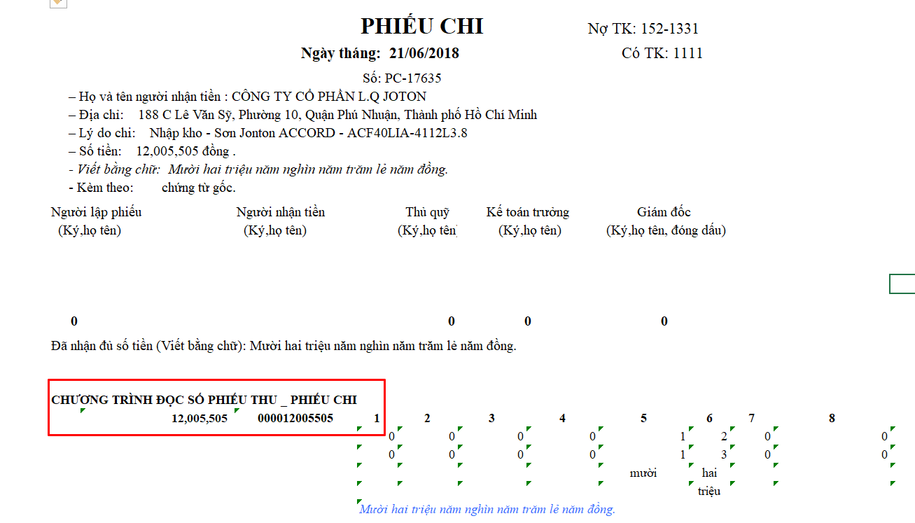 Các phiếu thu chi/ kế toán có thể in từ file Excel - Có cả công thức đọc số thành chữ không dùng VBA trong phần phiếu chi