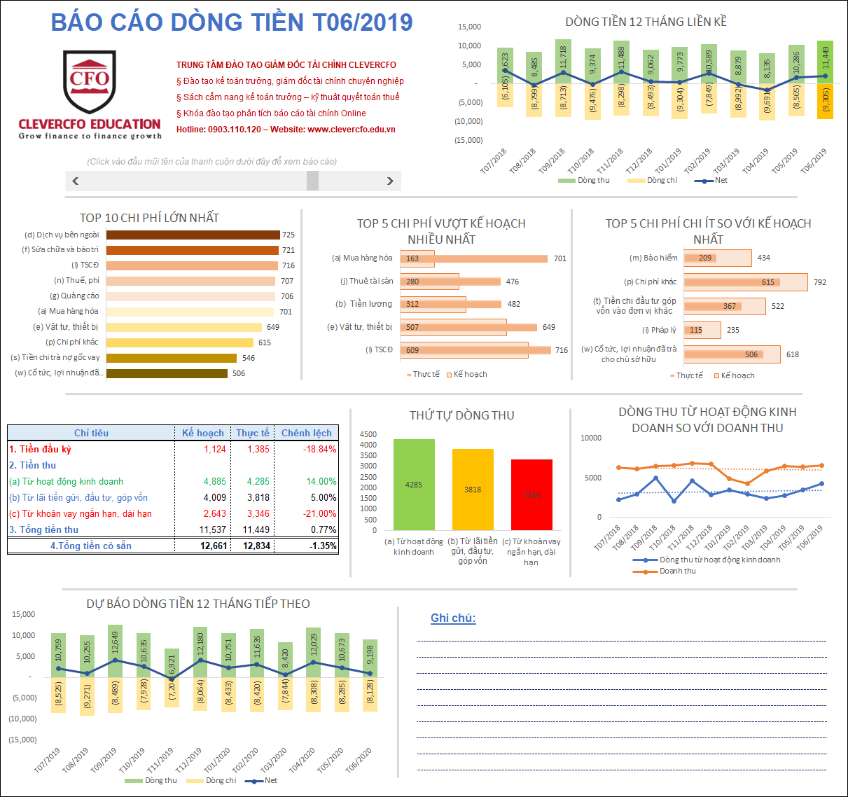 - Bên cạnh việc xác định xu hướng dòng tiền của quá khứ, file còn cập nhất dự báo dòng tiền của 12 tháng tiếp theo để doanh nghiệp có thể bám sát và chuẩn bị cho các kế hoạch tài chính sắp tới