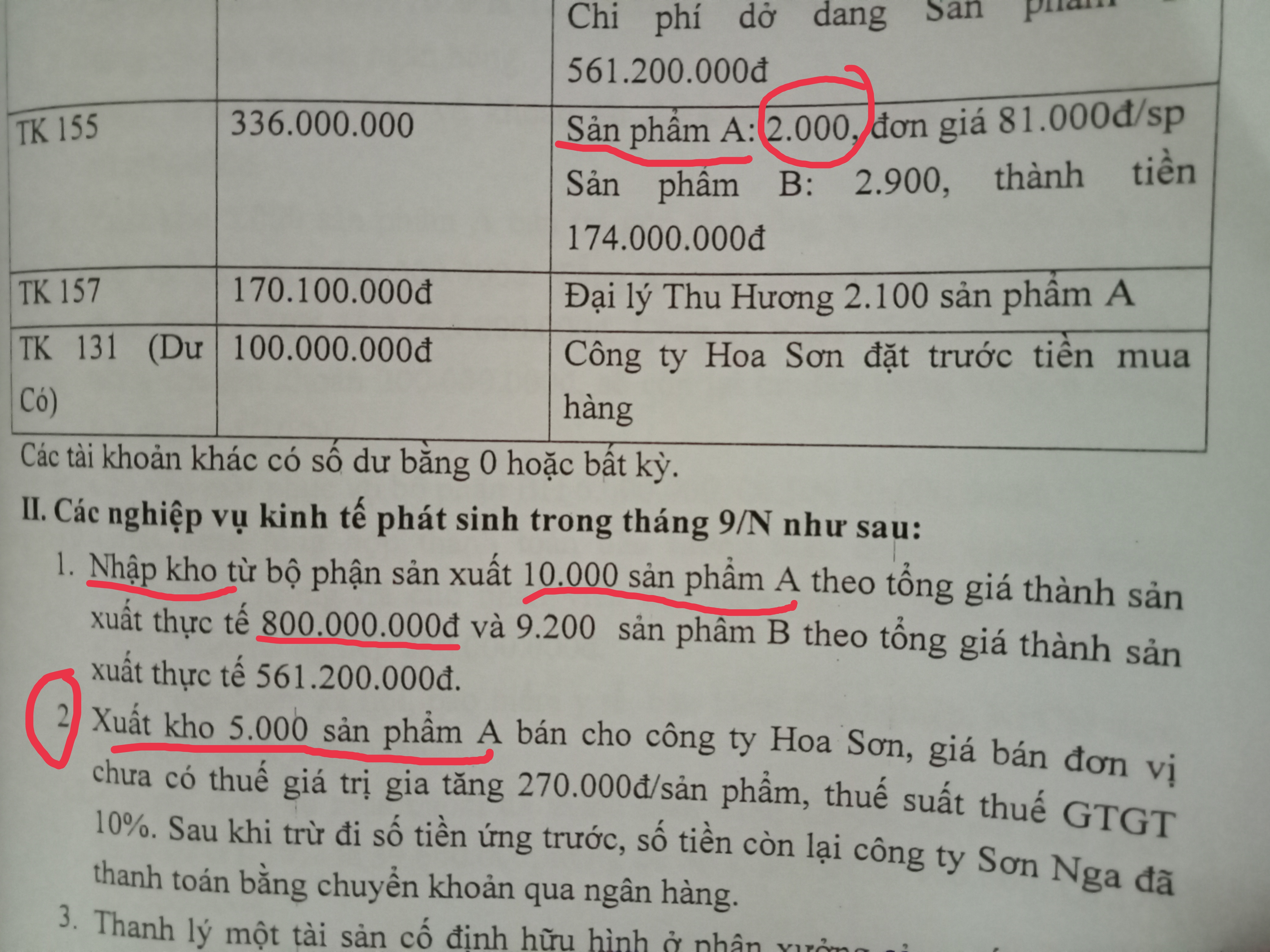 Anh chị cho em hỏi bài này với ạ: Phần giá vốn của 5000sp ở nv2 em tính đc là 402tr
