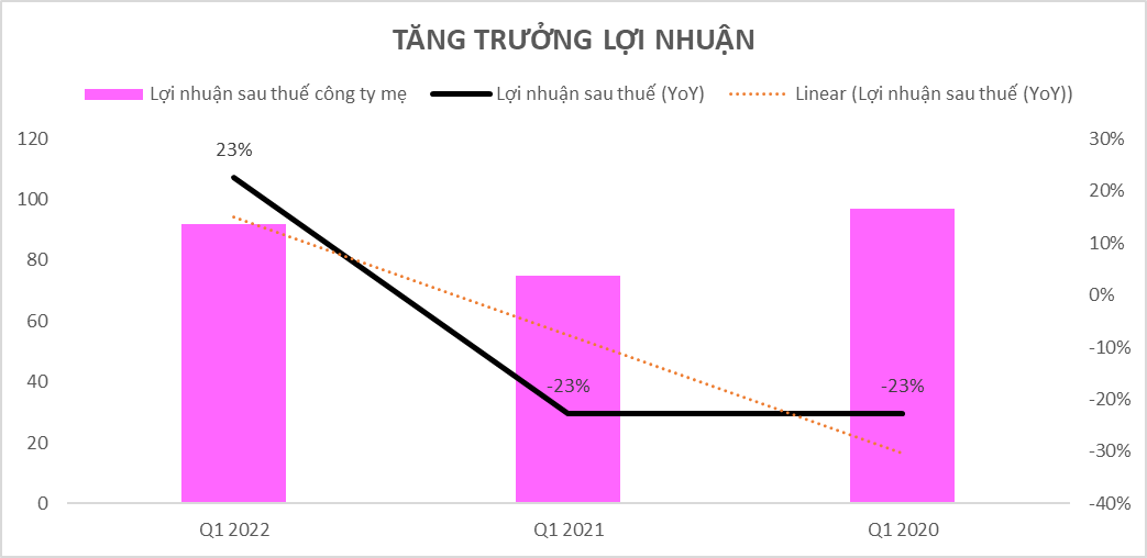 Lợi nhuận của doanh nghiệp ở kỳ hiện tại tăng 23% so với kỳ trước đó. Xu hướng tăng trưởng của doanh nghiệp qua các kỳ hiện đang là xu hướng tăng trưởng tăng.