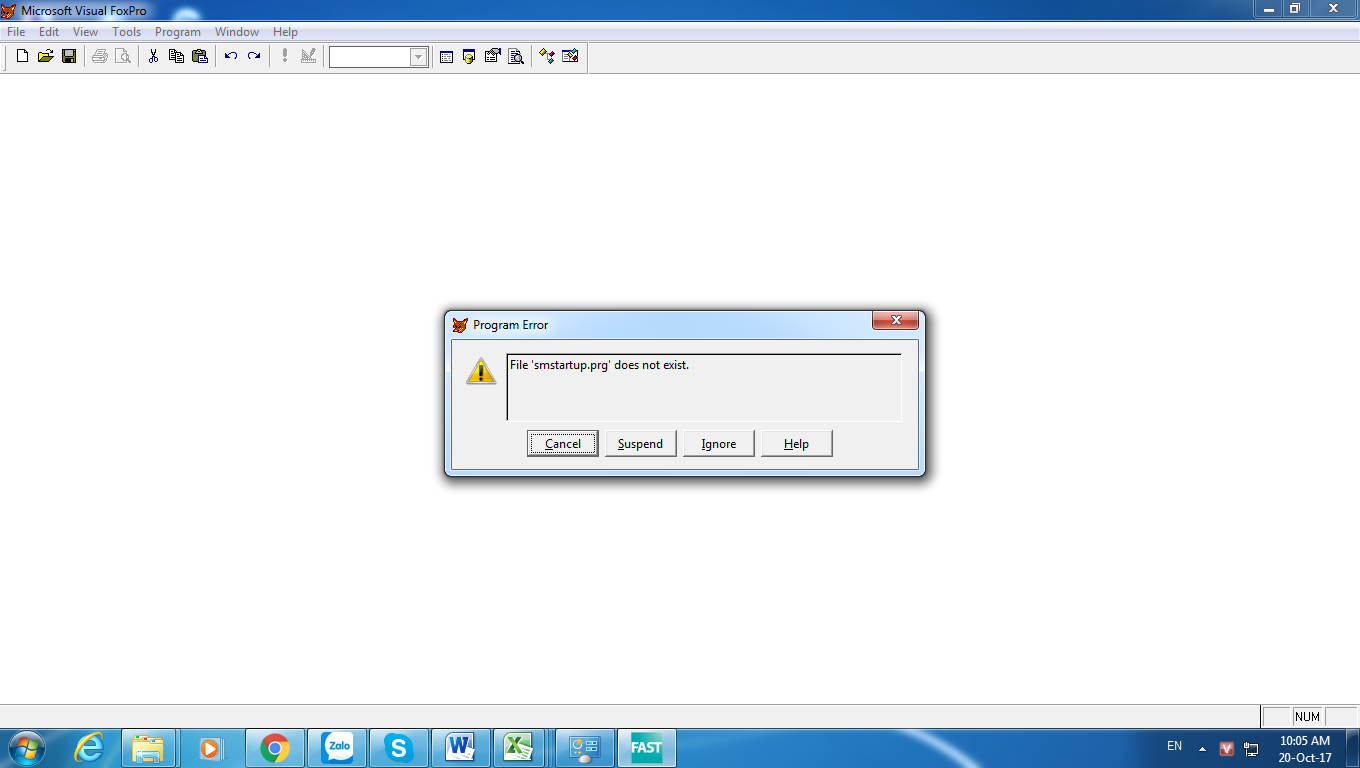 Lỗi này là do không tìm thấy file smstartup. Bạn alo ngay cho FAST để được hỗ trợ nhé.