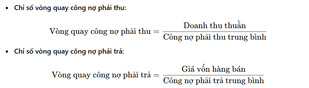 - Khái niệm: Các chỉ số này phản ánh hiệu quả của doanh nghiệp trong việc thu hồi công nợ và quản lý công nợ phải trả.