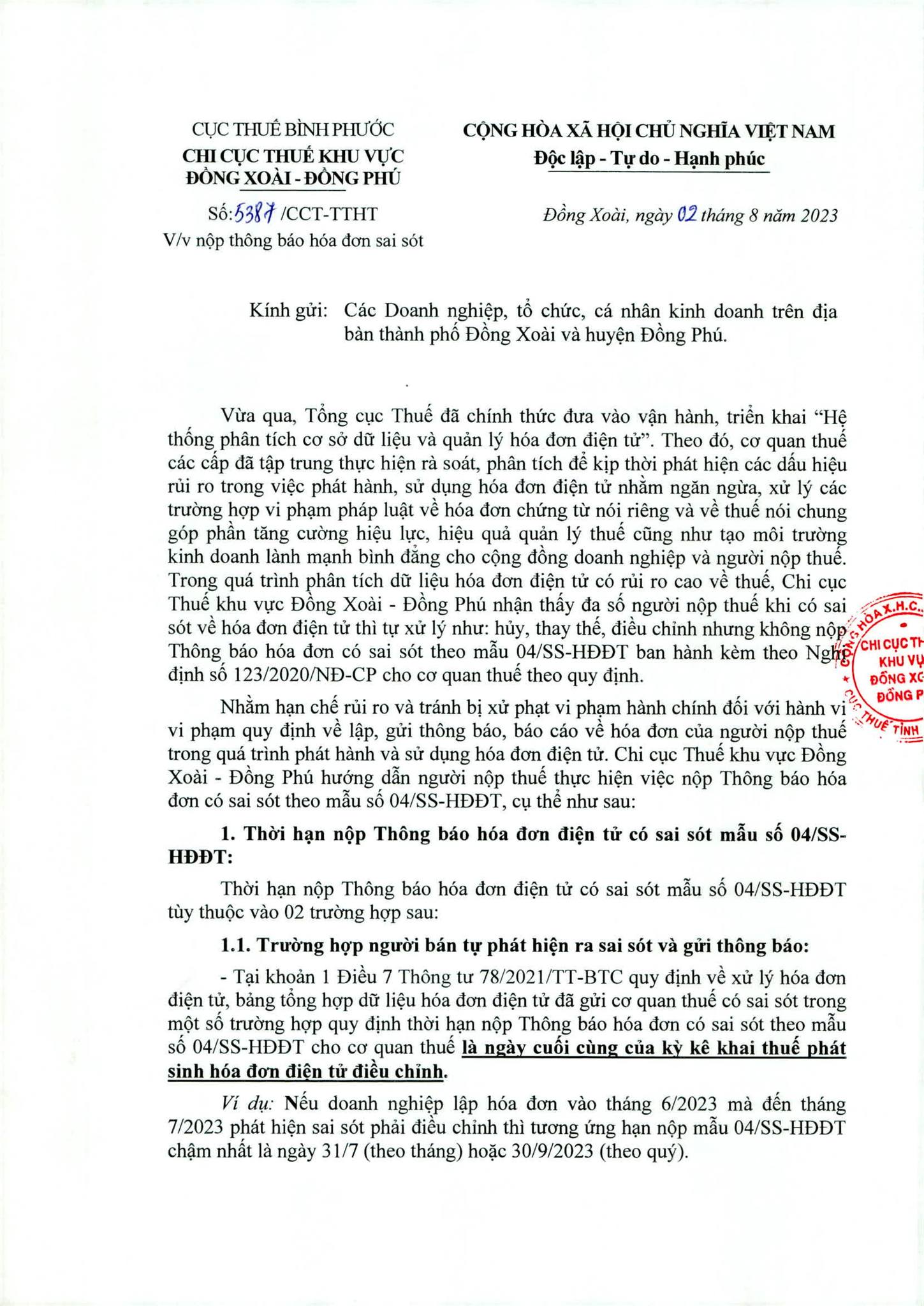 Công văn số 5387/CCT-TTHT ngày 02/08/2023 được đính kèm ở phía cuối bài viết nhé.