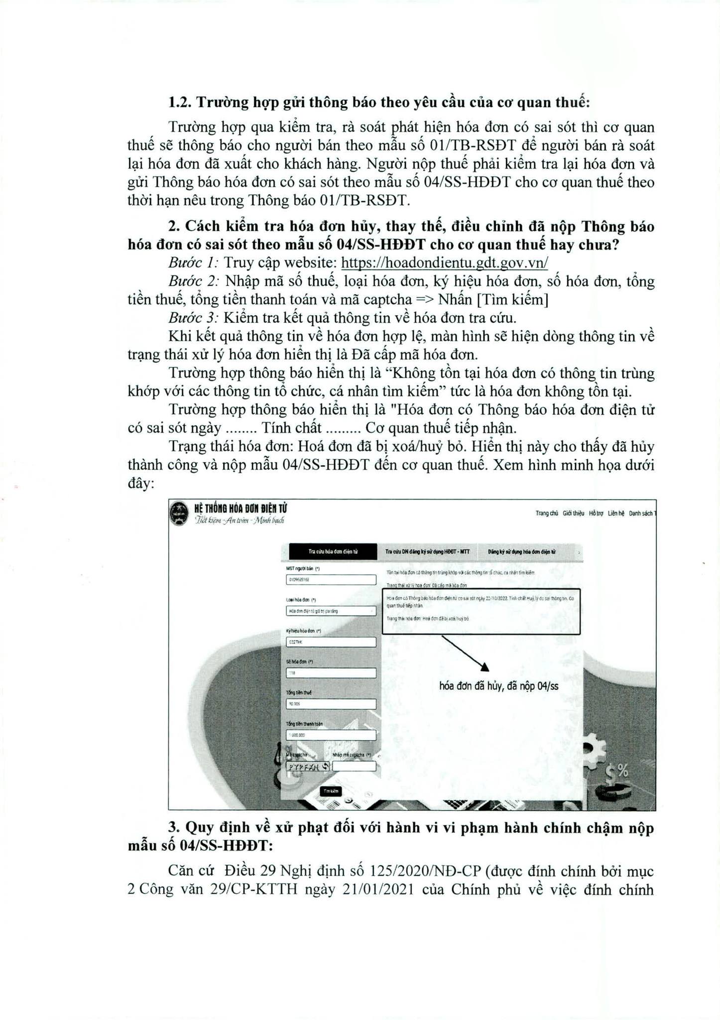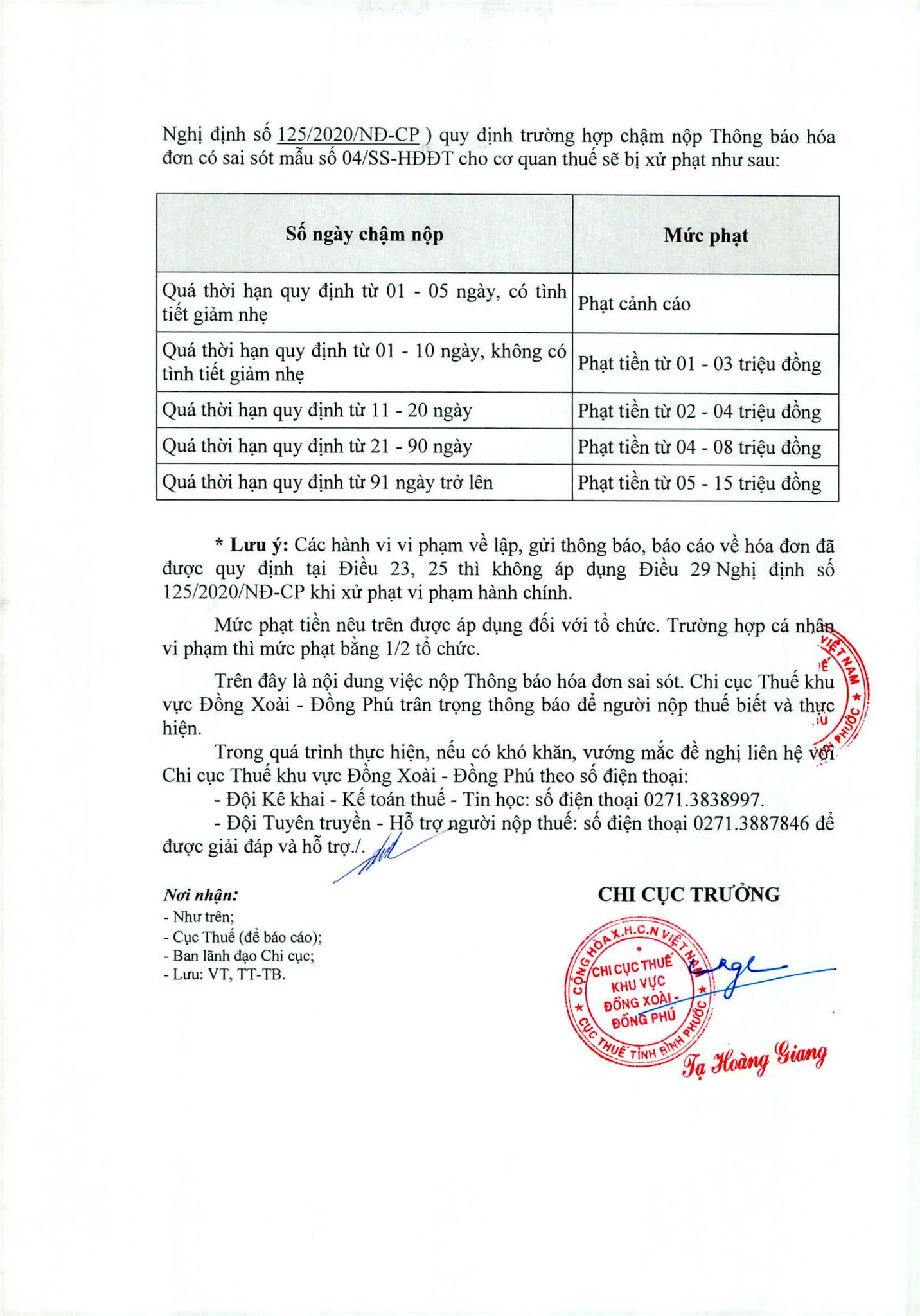 * Lưu ý: Các hành vi vi phạm về lập, gửi thông báo, báo cáo về hóa đơn đã được quy định tại Điều 23, 25 thì không áp dụng Điều 29 Nghị định số 125/2020/NĐ-CP khi xử phạt vi phạm hành chính.