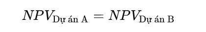 Công thức:Điểm thờ ơ sẽ là tỷ lệ chiết khấu (discount rate) tại đó giá trị hiện tại ròng (NPV - Net Present Value) của hai dự án bằng nhau, tức là: