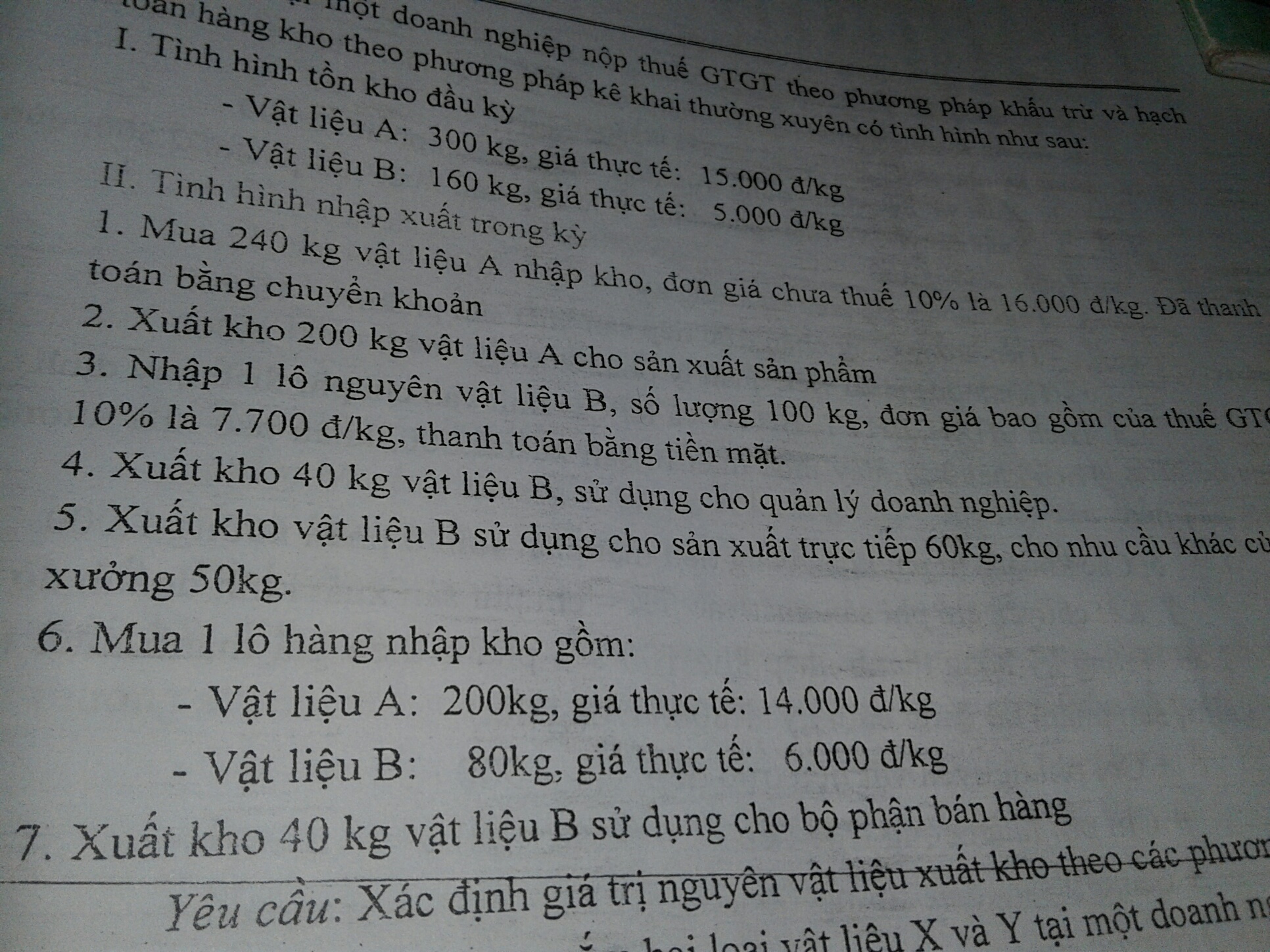 -Vật liệu B :160kg, giá thực tế :5.000 đ/kg