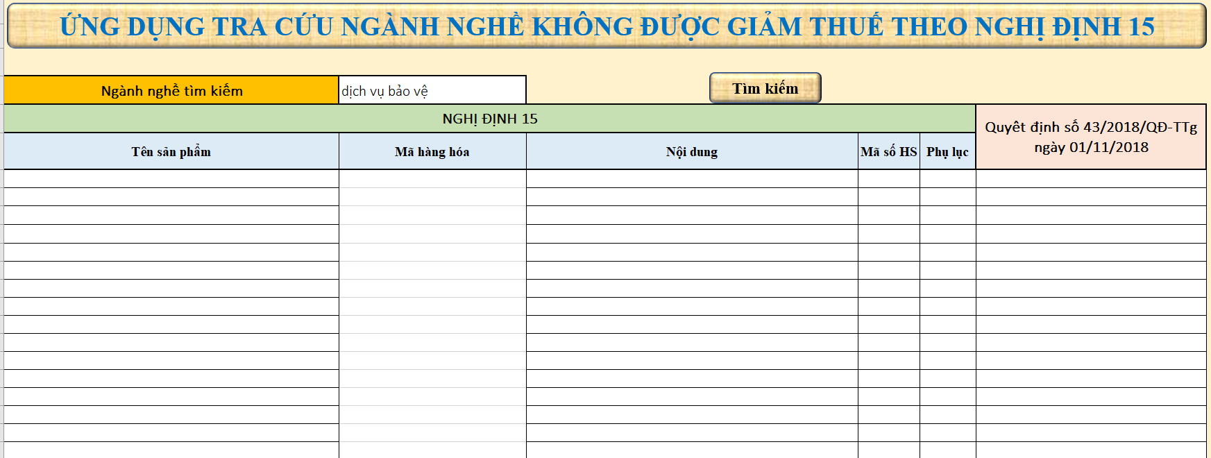File Excel tra cứu giảm thuế GTGT 8% theo NĐ 15