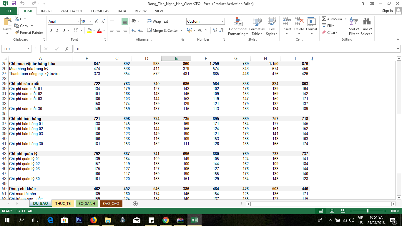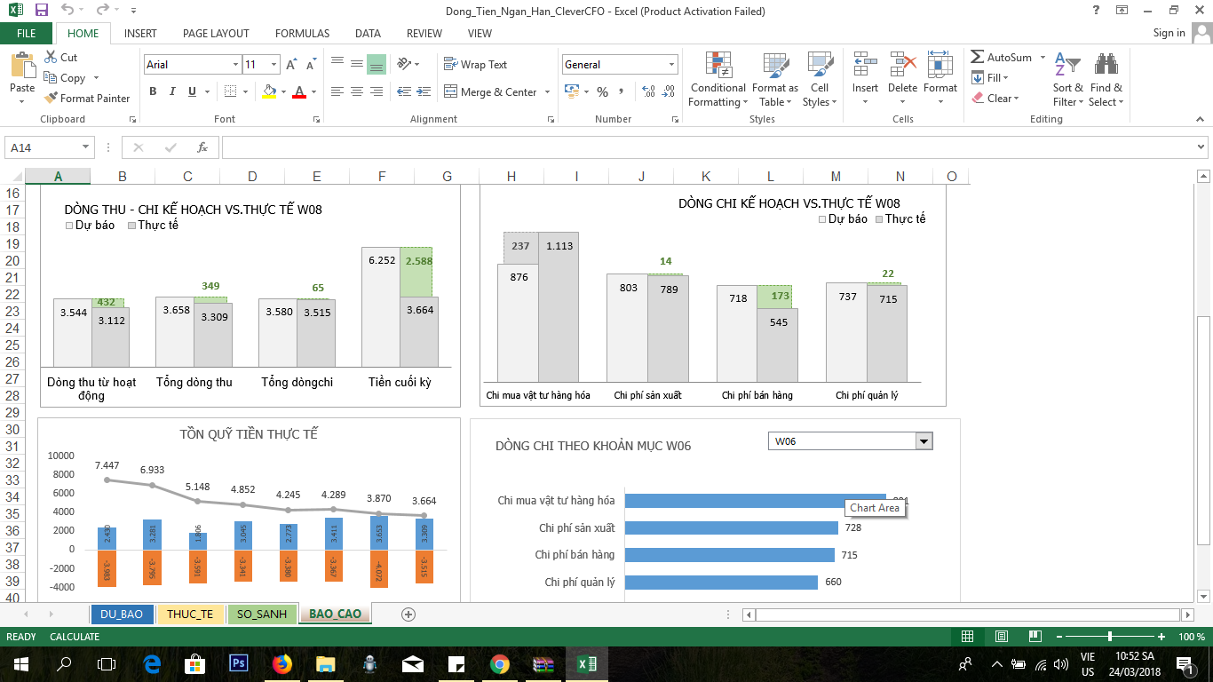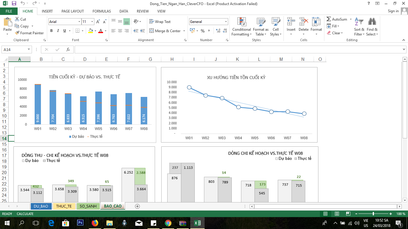 File do CleverCFO cung cấp dự báo dòng tiền ngắn hạn <8 tháng và sử dụng 6 biểu đồ "Check" trong kế toán quản trị để kiểm soát. Các bạn lưu ý vài điểm để sử dụng file tốt nhất: