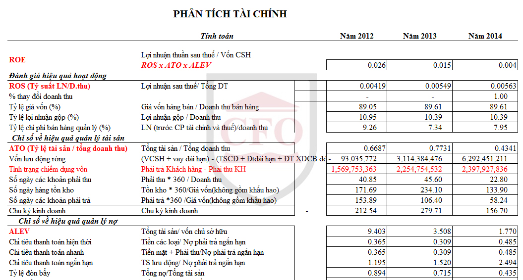 2. Phân tích các tỷ số tài chính (sheet: Tổng hợp)