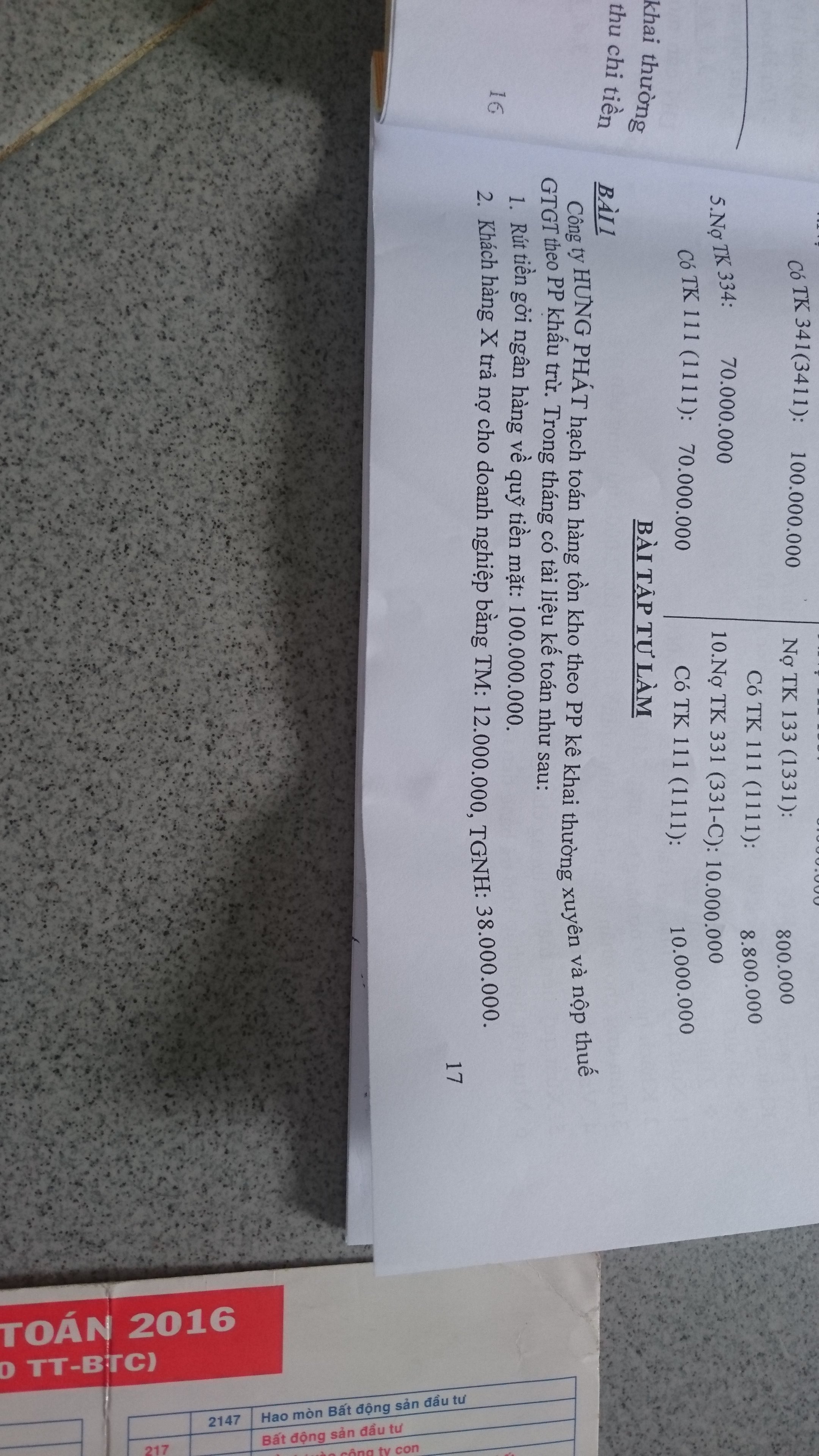 L Len Quang New Member Hội viên mới 6/3/18 #1 Dạ em cũng là sinh viên mới vô học nên việc định khoản còn yếu kém lém ạ anh chị nào đang rãnh rỗi thì có thể giải giúp em 6 bài định khoản này không ạ càng nhanh càng tốt . Cám ơn ! Đính kèm DSC_0038.JPG 1 MB · Lượt xem: 362