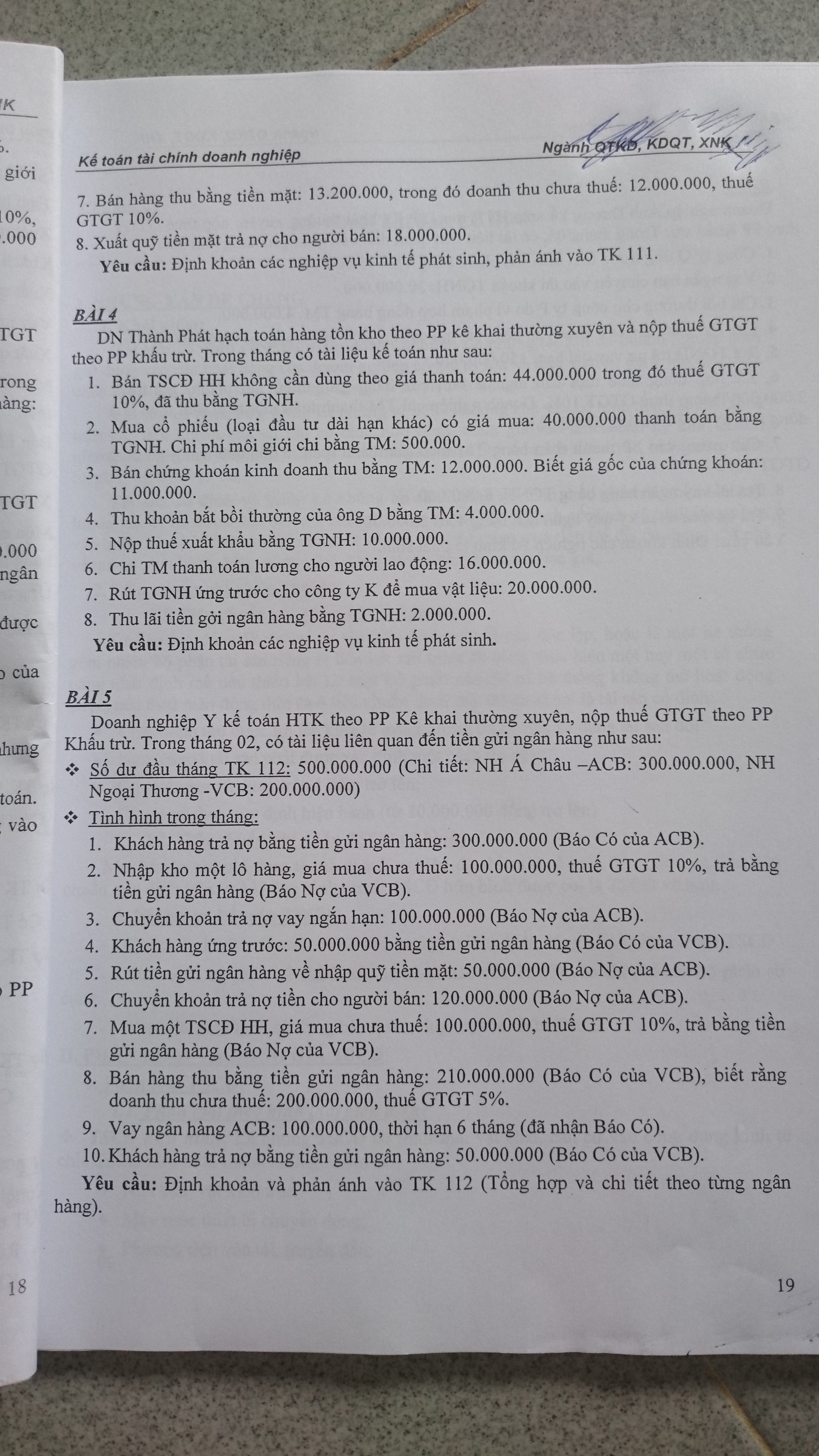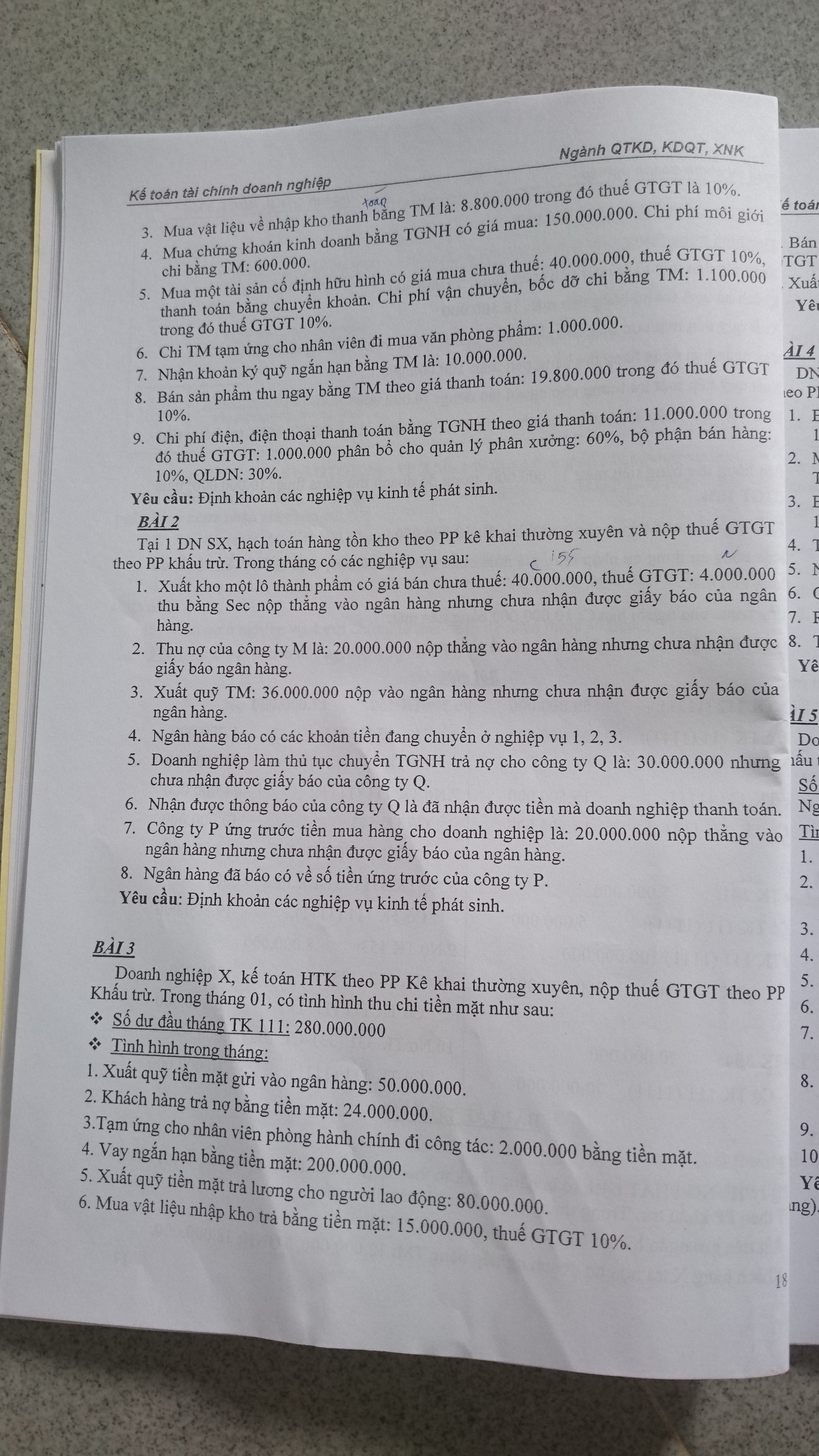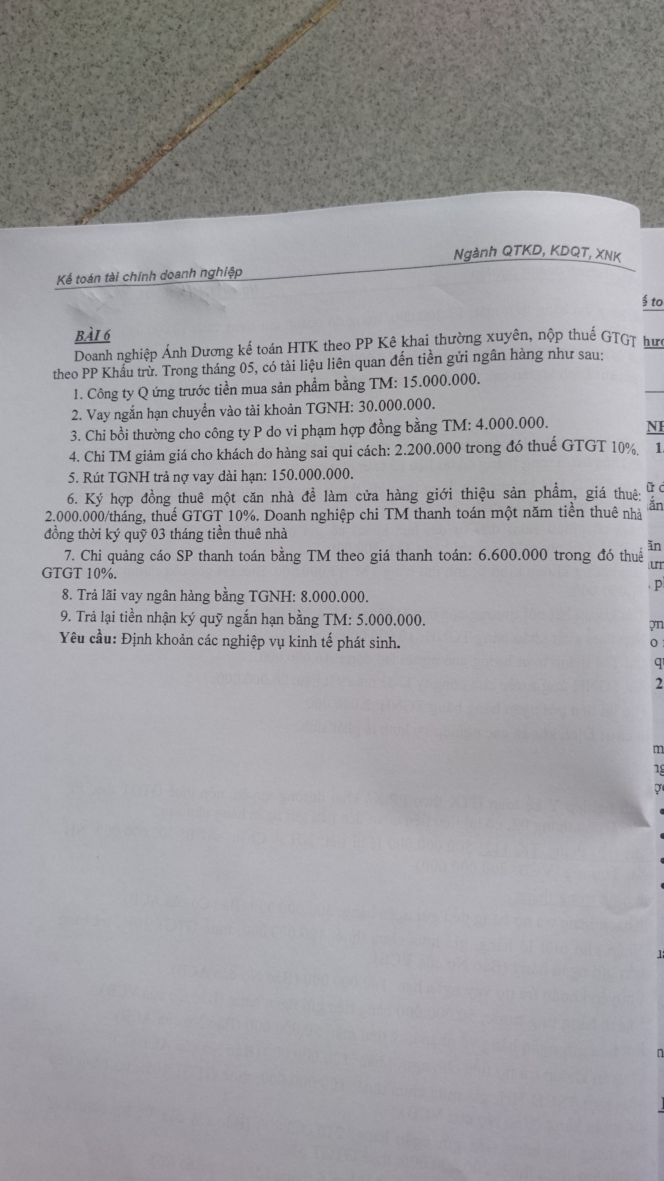 Dạ em cũng là sinh viên mới vô học nên việc định khoản còn yếu kém lém ạ anh chị nào đang rãnh rỗi thì có thể giải giúp em 6 bài định khoản này không ạ càng nhanh càng tốt . Cám ơn !