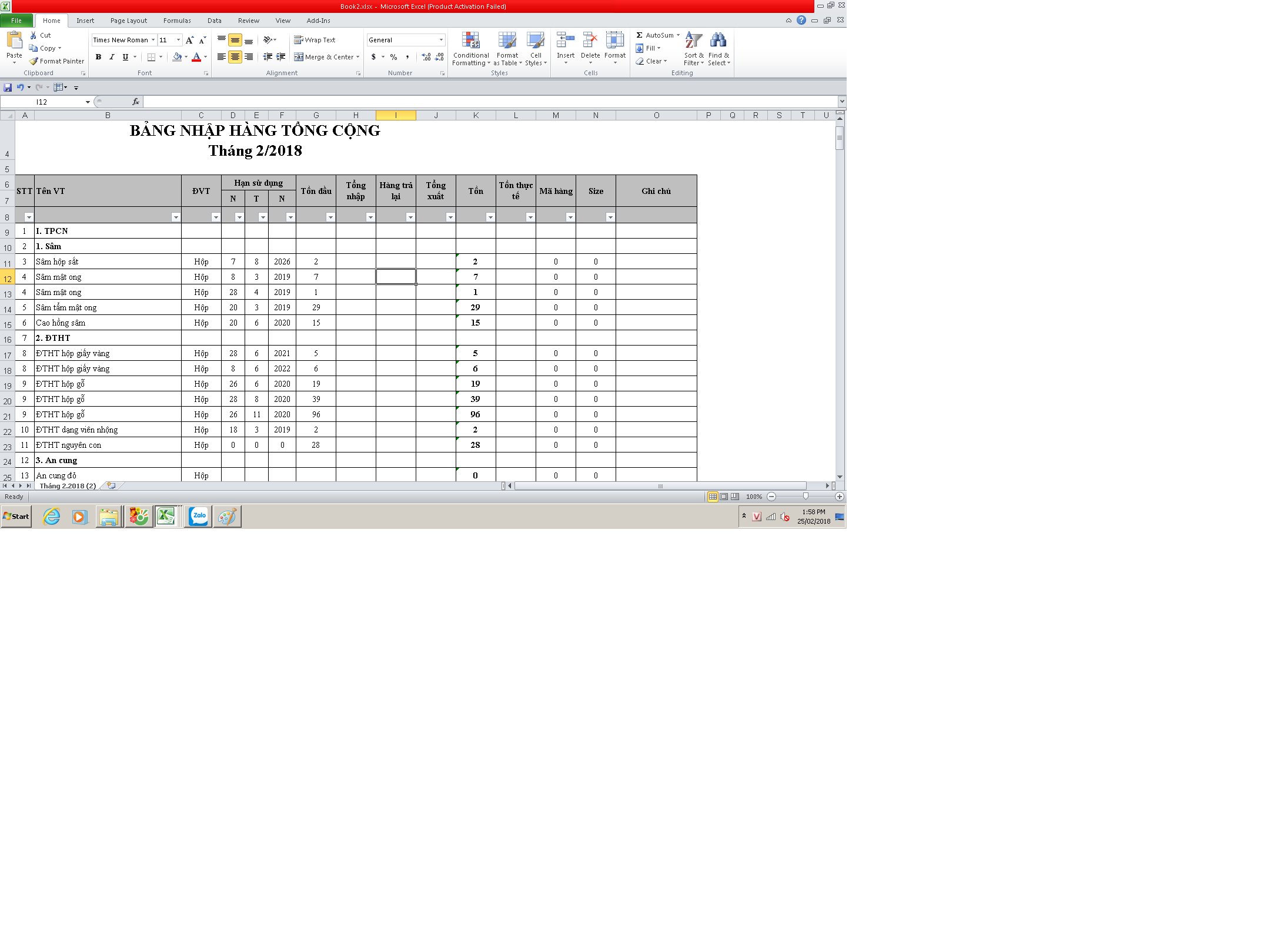 Tình hình em có cái bảng như sau. Giờ sếp bắt e tổng hợp lại để xem tồn bao nhiêu