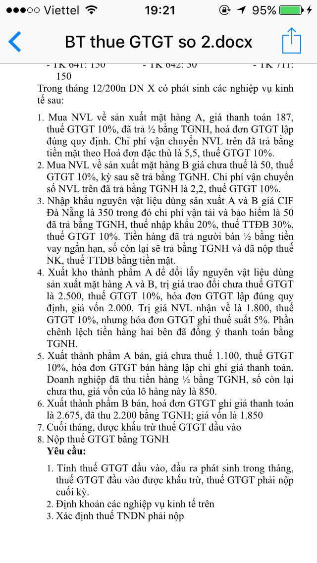 Nợ 152 và có 3332 : 350+70)* 30%=126