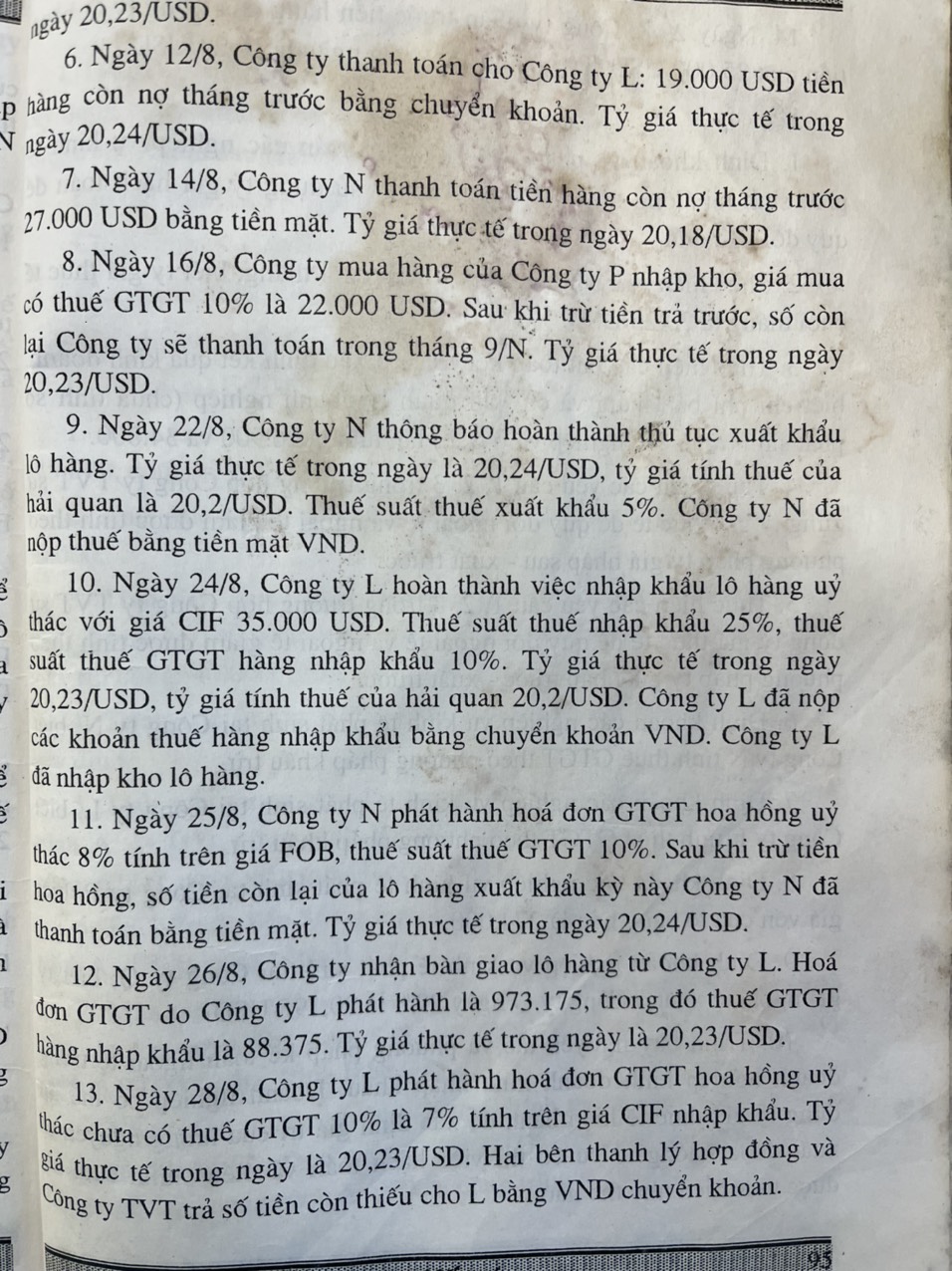 - ngày 21/6, cty nộp các khoản thuế của lô hàng nhập khẩu bằng chuyển khoản VND. tỉ giá thực tế trong ngày 16,18/USD.