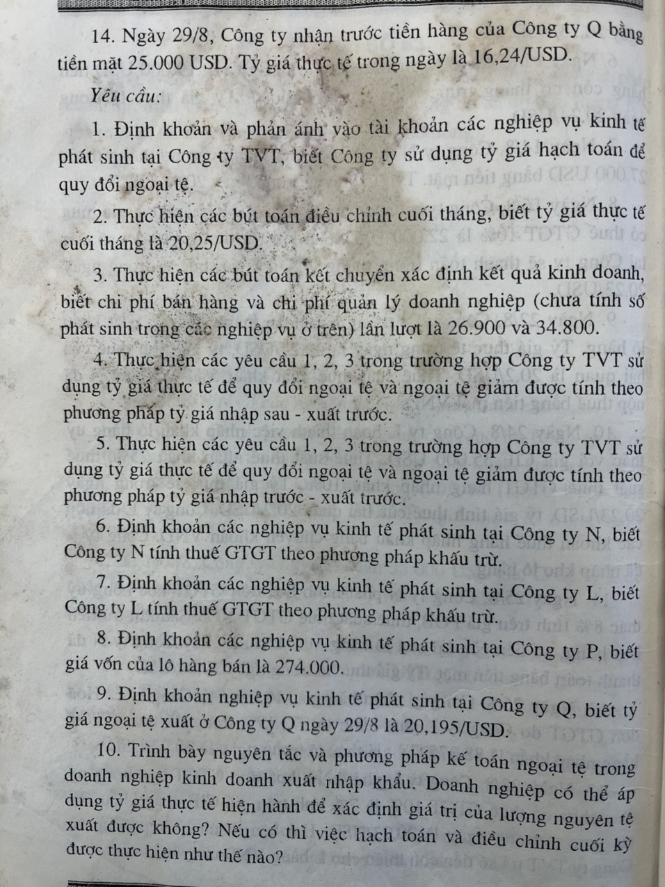 - cty tính ngoại tệ xuất theo tỉ giá đích danh, đầu tháng ko có ngoại tệ