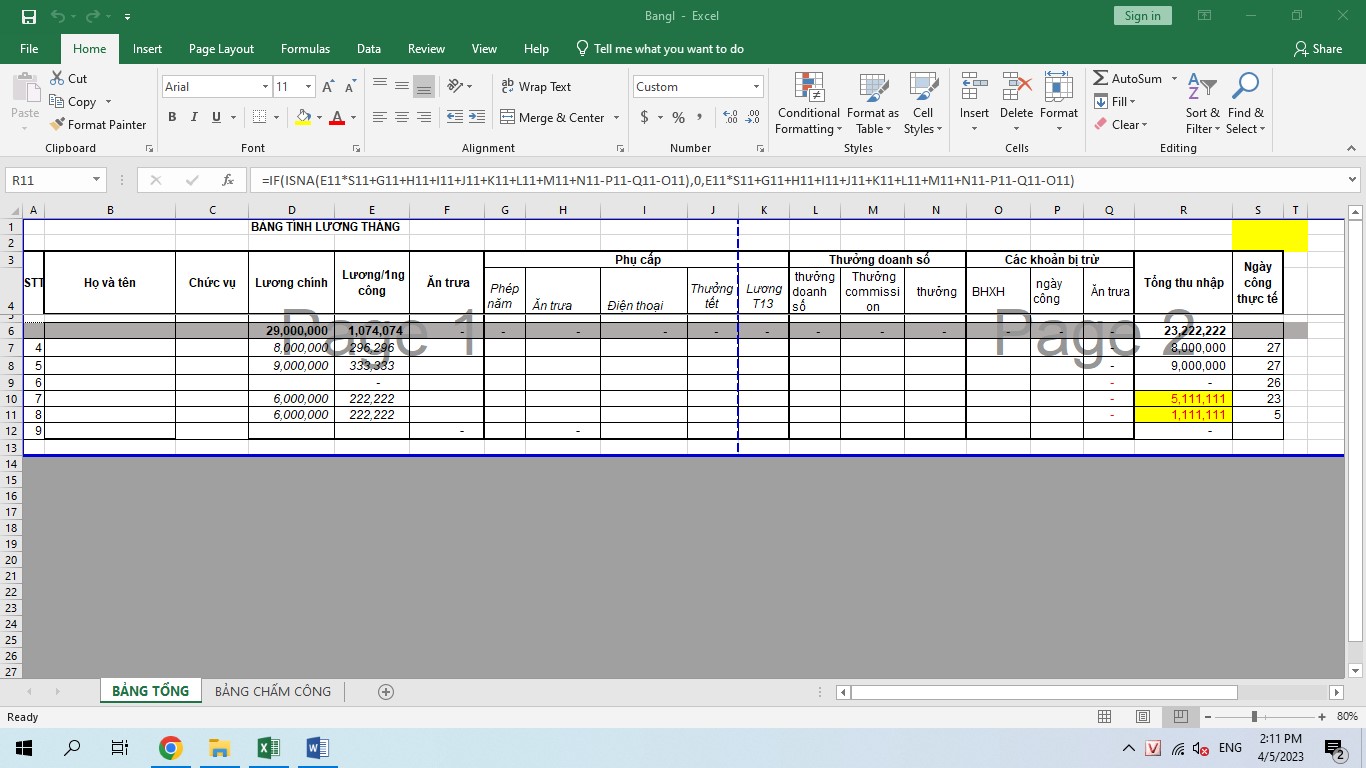 Z Zonmaomao New Member Hội viên mới 5/4/23 #1 Ac cho e hỏi là không biết sao cùng 1 bảng cùng 1 công thức, mà ô bên trên tự làm tròn số tiền lên (mà ko dùng hàm) còn ô bên dưới thì không ạ Đính kèm bangluong2.jpg 195.1 KB · Lượt xem: 469