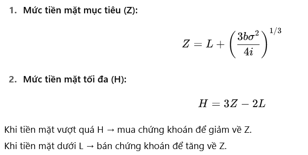 Mục tiêu: Xác định mức tiền mặt tối ưu doanh nghiệp cần duy trì khi dòng tiền ra – vào có tính biến động ngẫu nhiên, thay vì đều đặn.