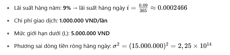 • Dòng tiền ròng mỗi ngày biến động ngẫu nhiên (theo phân phối chuẩn).