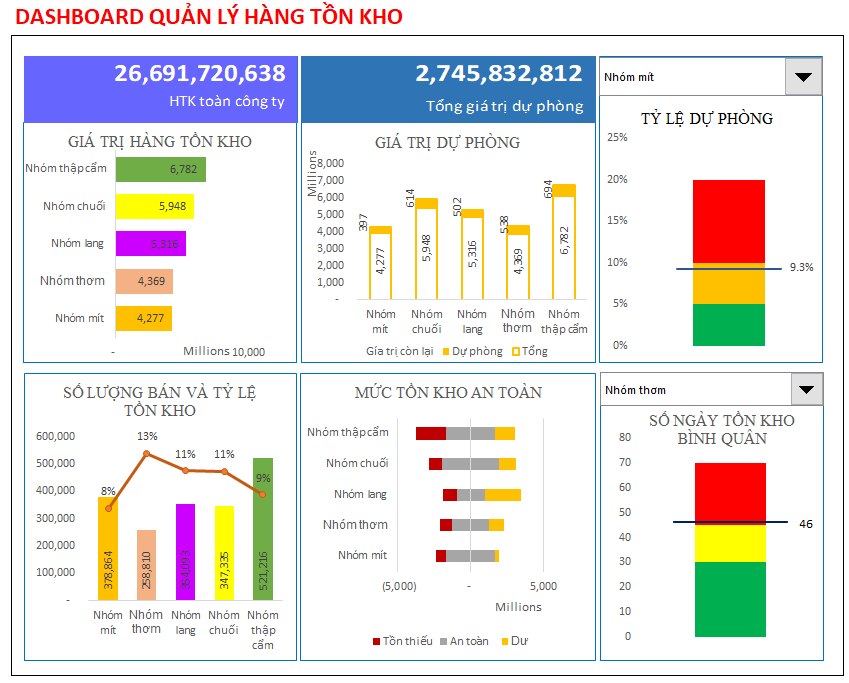 - So sánh mức tồn kho an toàn, nhóm sản phẩm nào đang tồn dư quá nhiều cũng như đang trong tình trạng tồn kho quá ít.