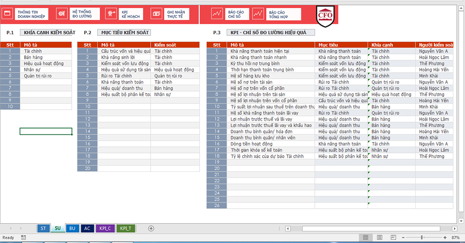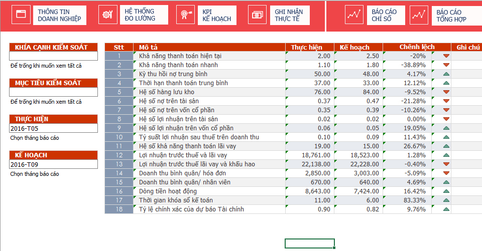 Tips: Việc xây dựng rõ việc chúng ta muốn kiểm soát gì thông qua: Khía cạnh kiểm soát -> Mục tiêu kiểm soát -> Chỉ số sử dụng để kiểm soát giúp nhà quản trị tài chính loại bỏ hàng chục chỉ số tài chính - phi tài chính trùng lắp và không cần thiết![]()