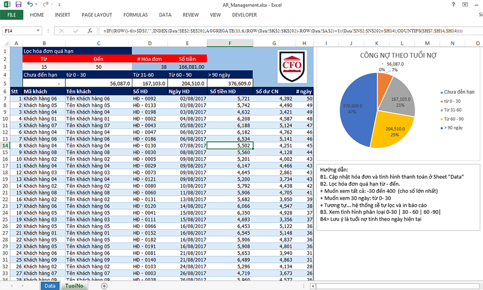 Ứng dụng quản lý công nợ bằng Excel có thể lọc danh sách công nợ theo tuổi nợ có thể dùng ngay cho công việc của mình.