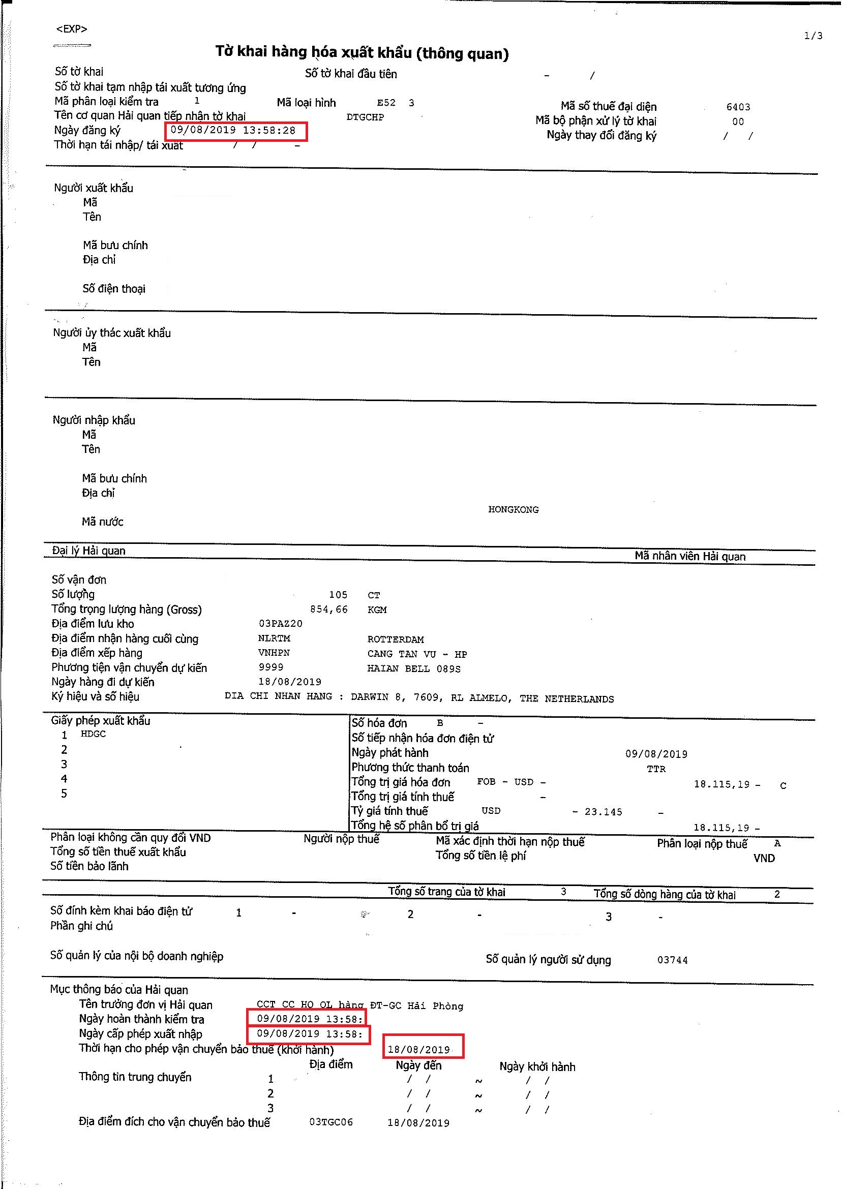 Vậy ví dụ đối với tờ khai này (ảnh đính kèm phía dưới), ngày ghi nhận doanh thu có phải là ngày 09.08.2019 - Ngày cấp phép xuất nhập không ạ?
