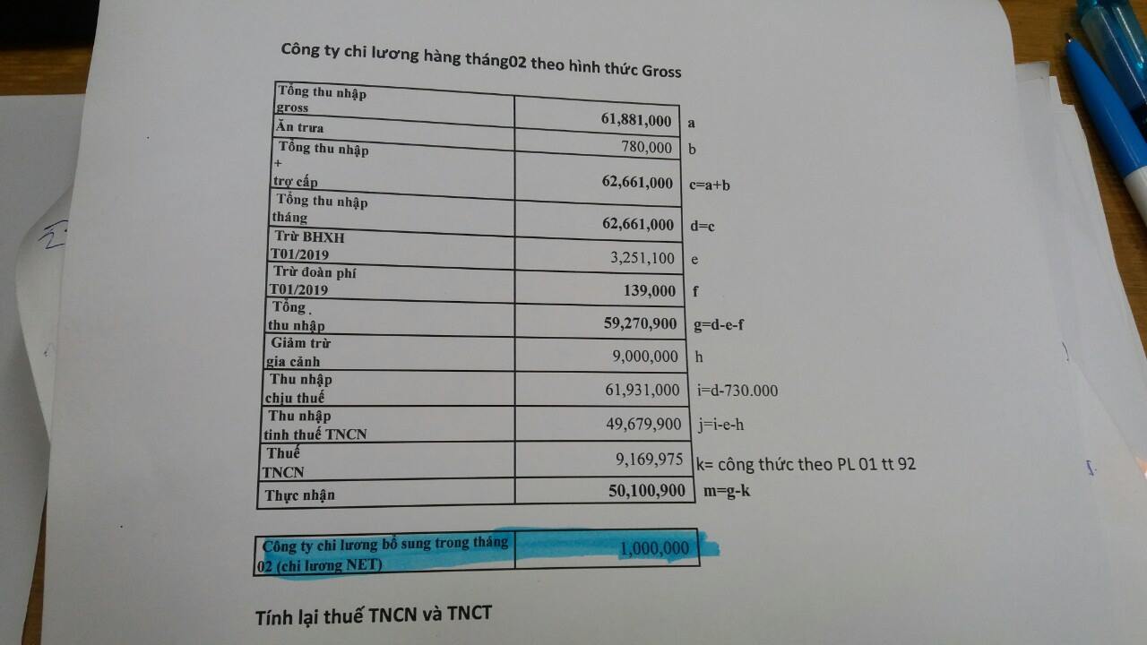 Công ty chi lương hàng tháng02 theo hình thức Gross