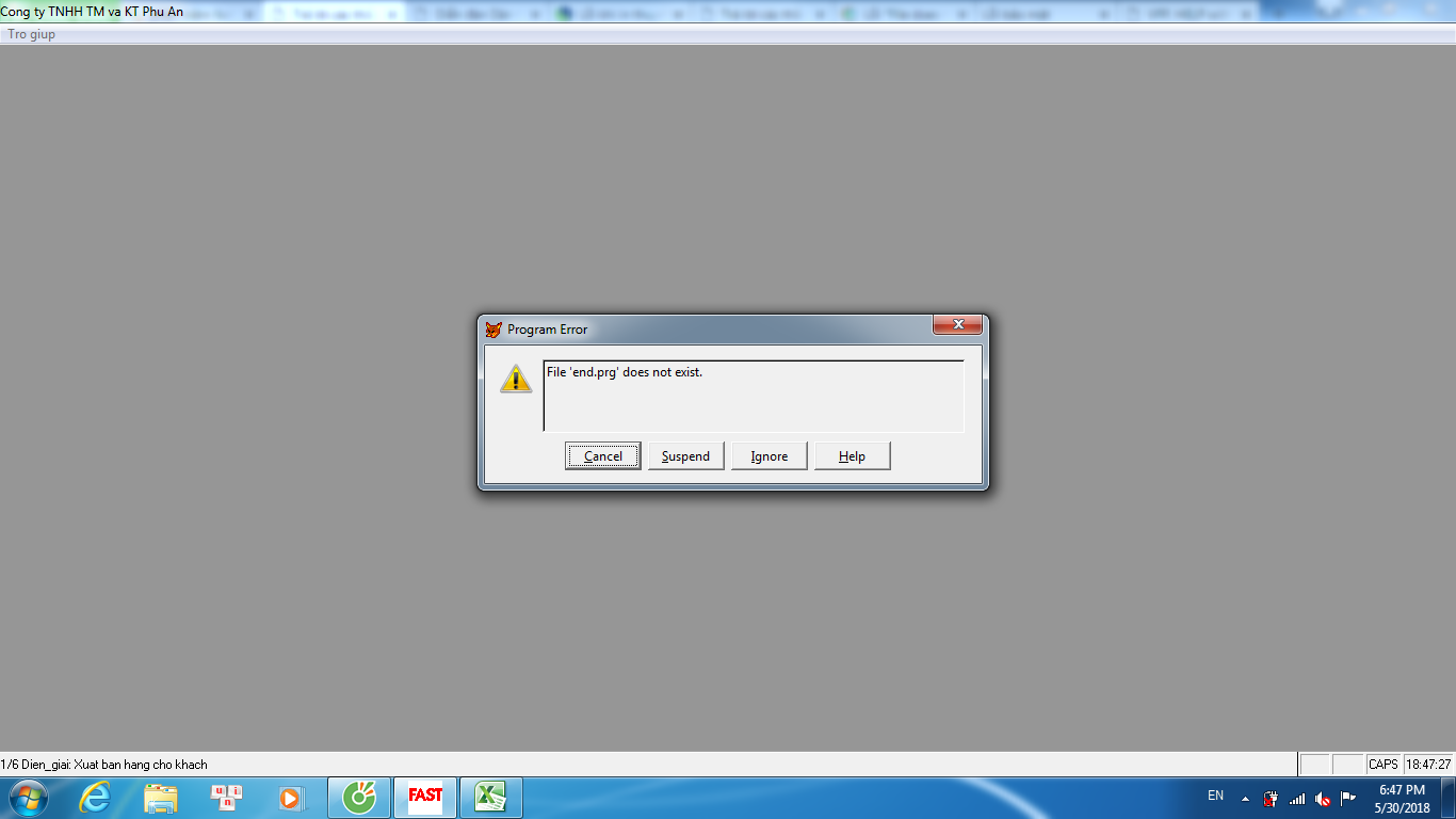 Em đang sử dụng bản demo fast 2006.f , vừa rồi máy của em có bị virus, em đi cài lại win và chạy lại phần mềm, Khi chạy giá trị trung bình cho hàng tồn kho hoặc vào xem hàng tồn kho thì bị lỗi table has no index order set, Lúc đóng chương trình thì bị như vậy. Anh chị giúp em xử lý với ạ(