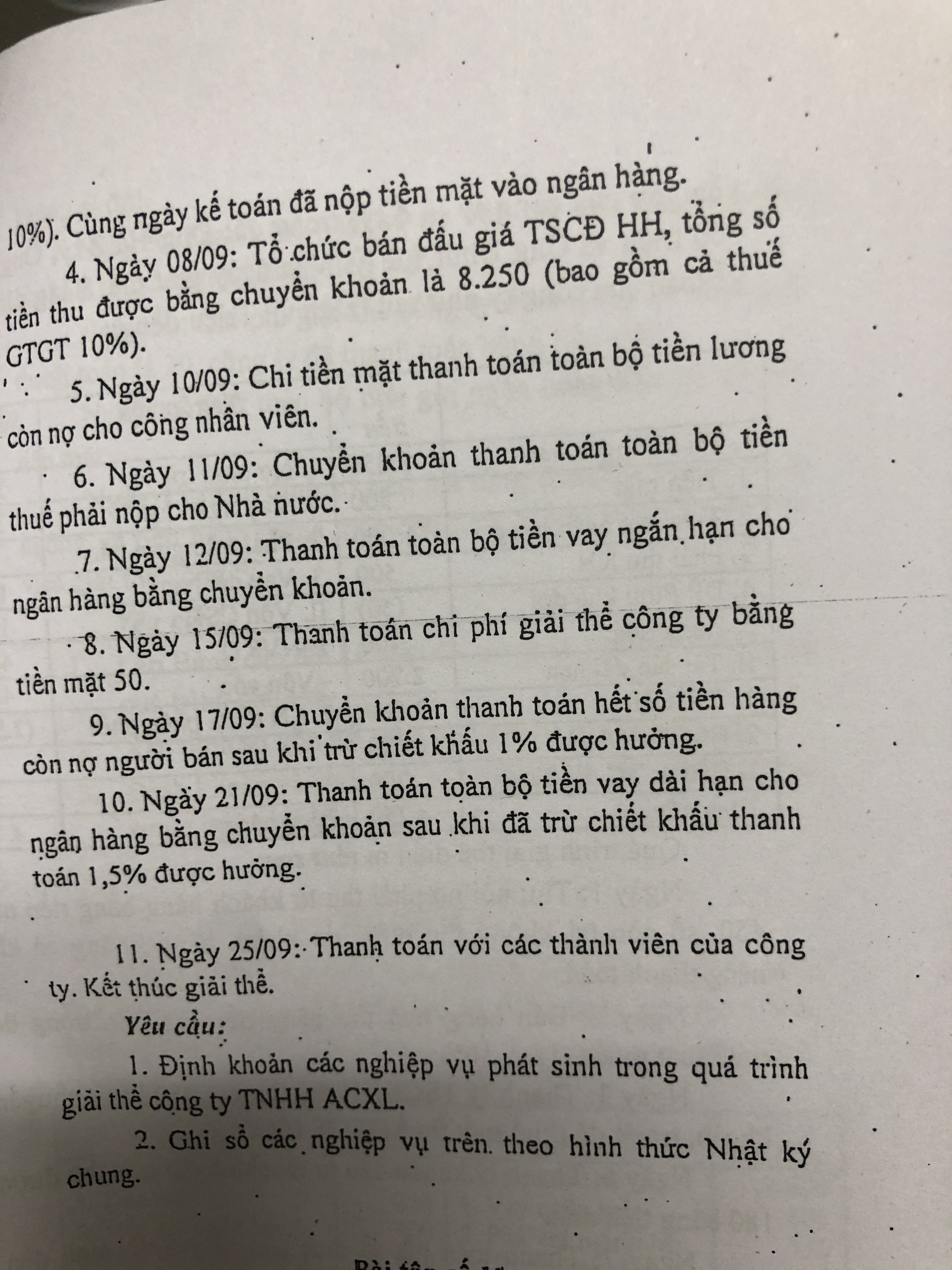 Mọi người ơi giúp em bài này với ạ. Tuàn sau kiểm tra mà em không biết làm Chỉ cần định khoản thuii ạ