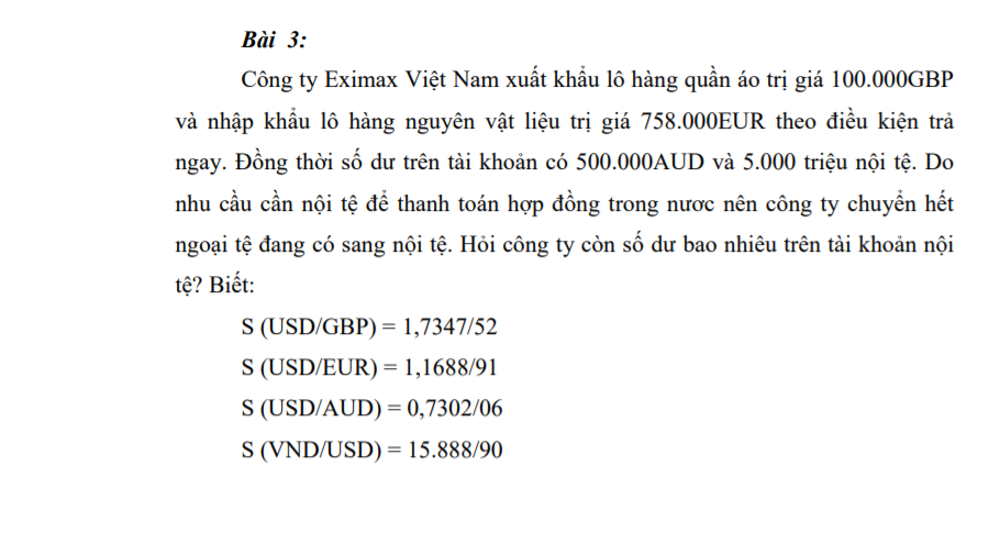 T Tường Vy123 New Member Hội viên mới 8/8/21 #1 Em đang học môn Thanh Toán Quốc Tế, mọi người giúp em bài này với ạ Đính kèm Screenshot (315).png 144.4 KB · Lượt xem: 183