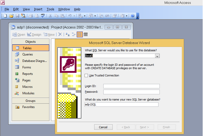 Tạo 1 file Access Project (ADP) với nguồn dữ liệu (Data Source) được chỉ định linh hoạt